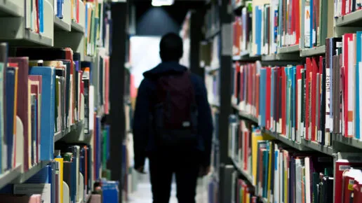 The new boy tiptoes down it, hoping he might get away with passing the library unheard.